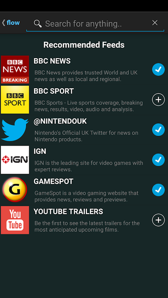 Fitur tambahan termasuk kemampuan untuk menyegarkan konten dengan menggesek layar dan mengakses menu dengan menggesek dari sisi kiri. Pengguna juga dapat mengedit dan mengurutkan umpan berita mereka dengan mudah, serta mengimpor dan mengekspor umpan sesuai keinginan. Dengan Flow, semua sumber berita dapat diakses secara efisien dan terorganisir.